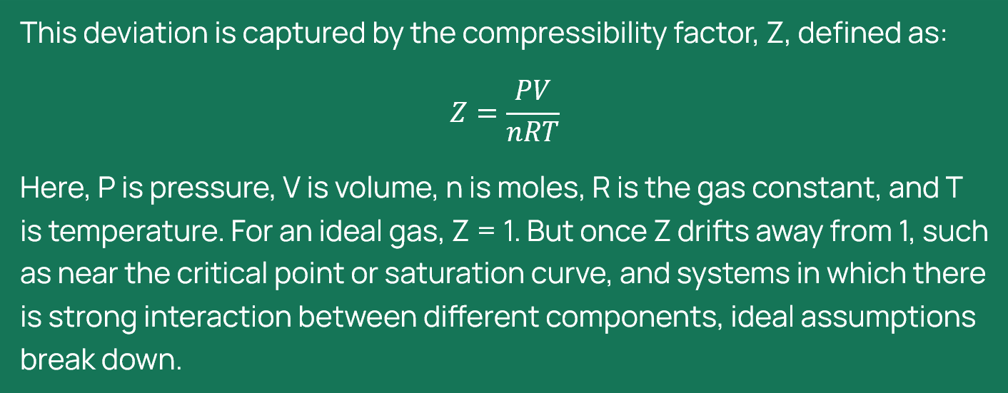 AA, IEAGHG: This conversion becomes particularly important when dealing with gas-dominated streams (or systems) that contain components which are in the liquid state in their pure form at standard conditions (1 bar and 15°C), and when operating under conditions that deviate from ideal gas behaviour. Once the compressibility factor Z drifts away from 1, how safe is it to continue assuming that ppm mole and ppm volume give us an identical view of what is actually in the line? Where does it really matter?